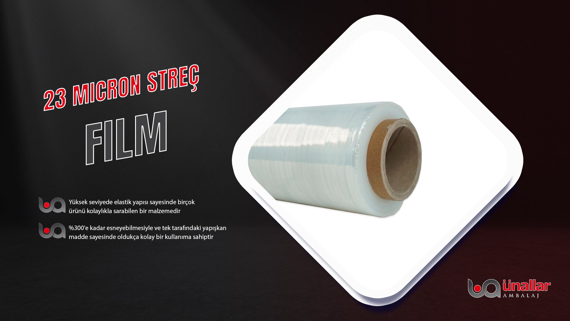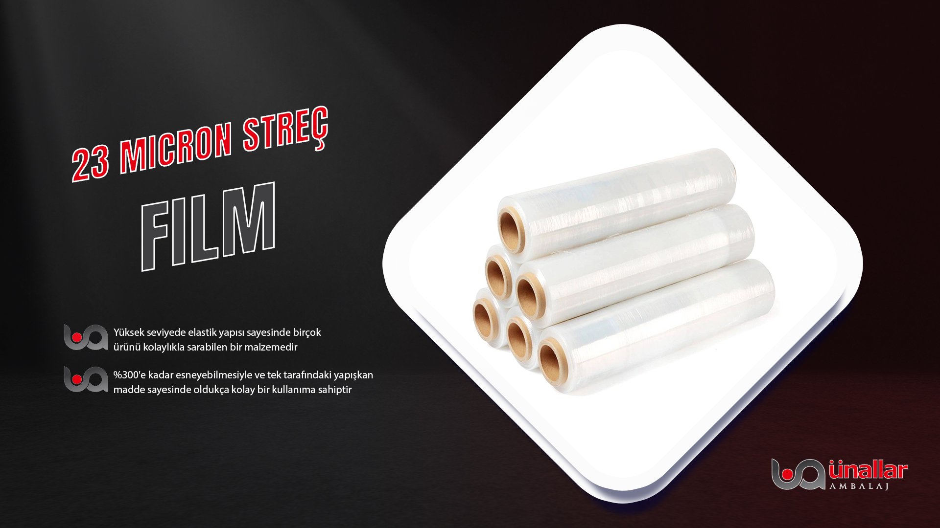 Yüksek seviyede elastik yapısı sayesinde birçok ürünü kolaylıkla sarabilen bir malzemedir. %300'e kadar esneyebilmesiyle ve tek tarafındaki yapışkan madde sayesinde oldukça kolay bir kullanıma sahiptir. 17 ve 23 micron kalınlıklarda ve çeşitli uzunluklarda streç film bulunmaktadır.