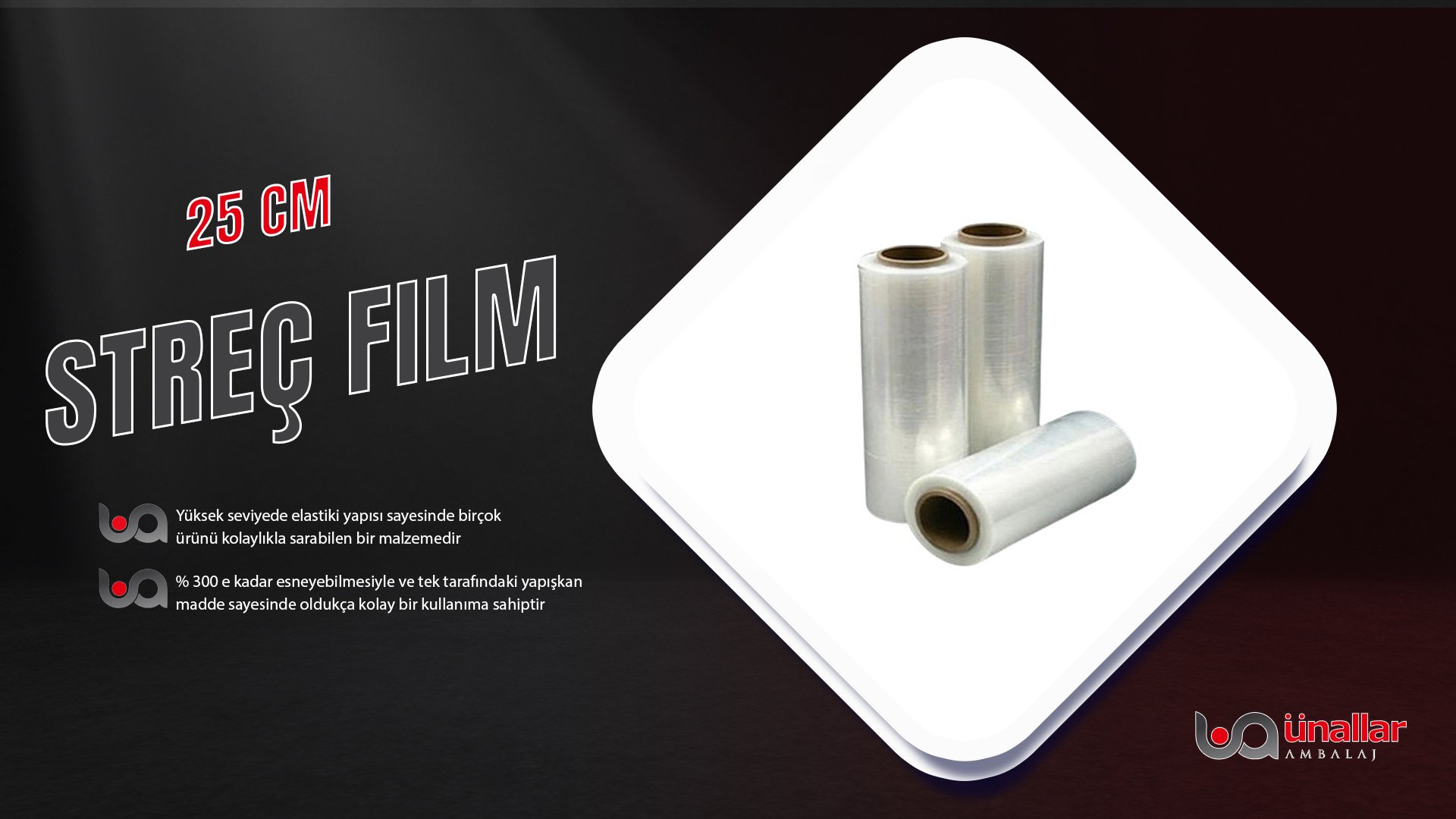 Yüksek seviyede elastiki yapısı sayesinde birçok ürünü kolaylıkla sarabilen bir malzemedir. % 300 e kadar esneyebilmesiyle ve tek tarafındaki yapışkan madde sayesinde oldukça kolay bir kullanıma sahiptir. 17 ve 23 micron kalınlıklarda ve çeşitli uzunluklarda streç film bulunmaktadır.