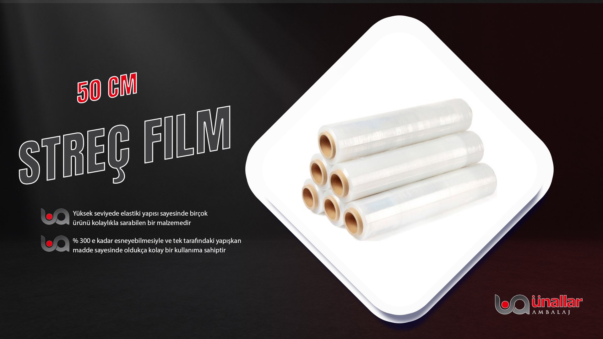 Yüksek seviyede elastik yapısı sayesinde birçok ürünü kolaylıkla sarabilen bir malzemedir. %300'e kadar esneyebilmesiyle ve tek tarafındaki yapışkan madde sayesinde oldukça kolay bir kullanıma sahiptir. 17 ve 23 micron kalınlıklarda ve çeşitli uzunluklarda streç film bulunmaktadır.